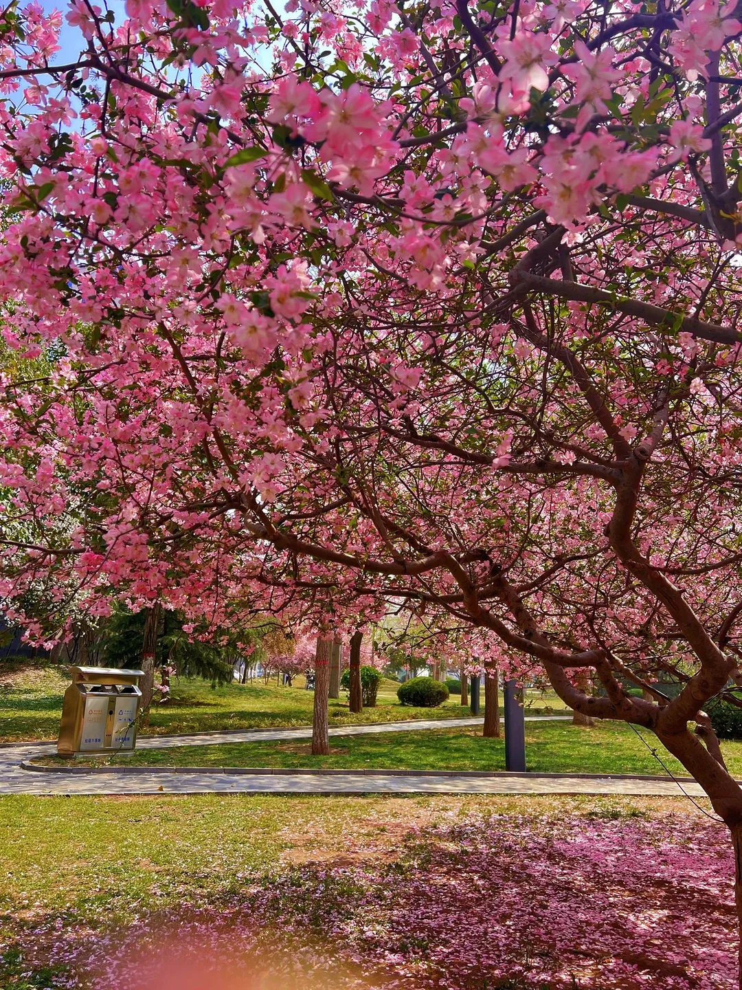 路线1️⃣:碧沙岗站B口出站,从公园北门进入,漫步海棠大道,赏完海棠逛西南碧桃园,最后从绿城广场站返程;