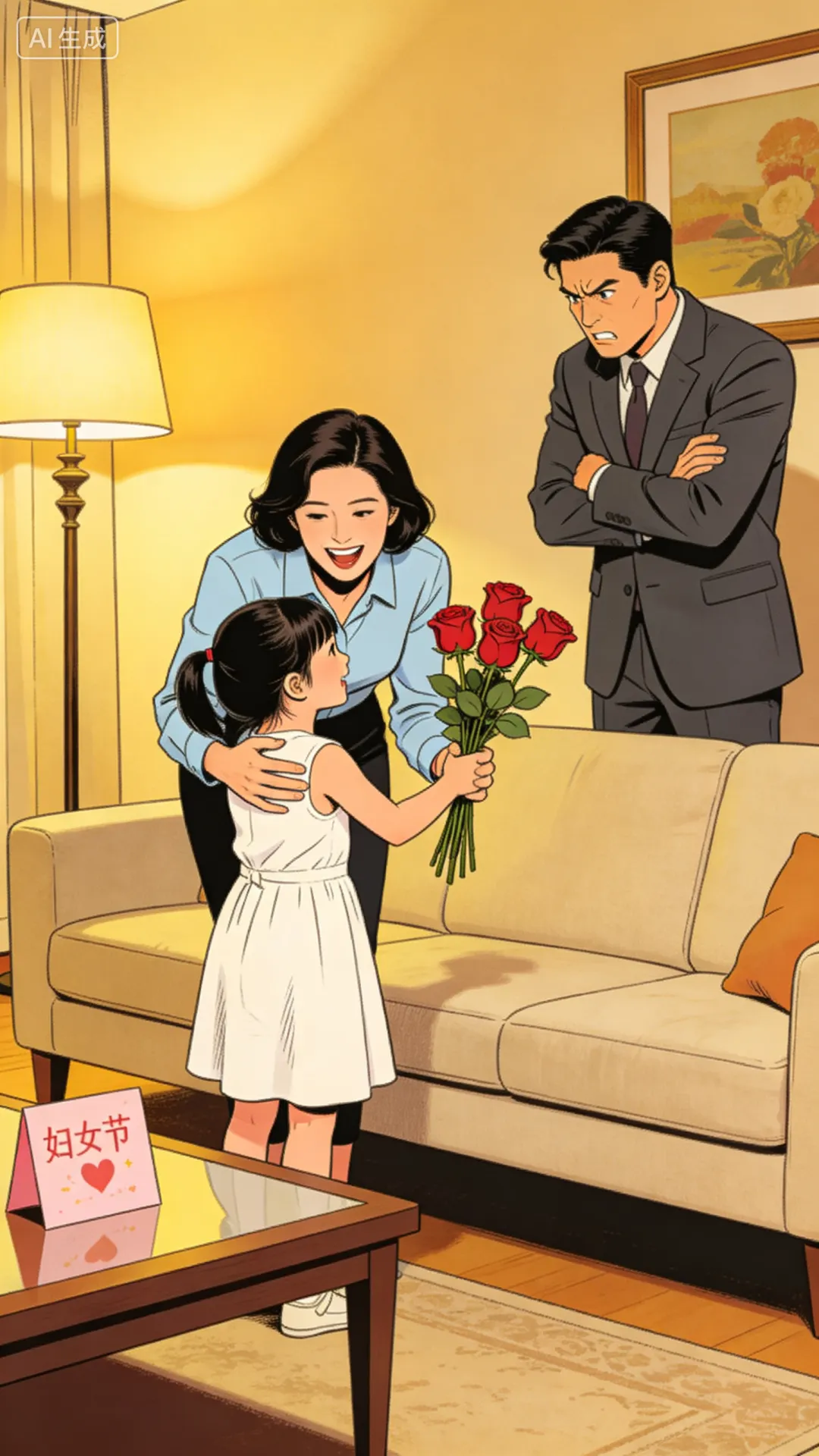 三八妇女节当天,一个8岁的小女孩,用自己攒了很久的50块钱,给妈妈买了5朵玫瑰。