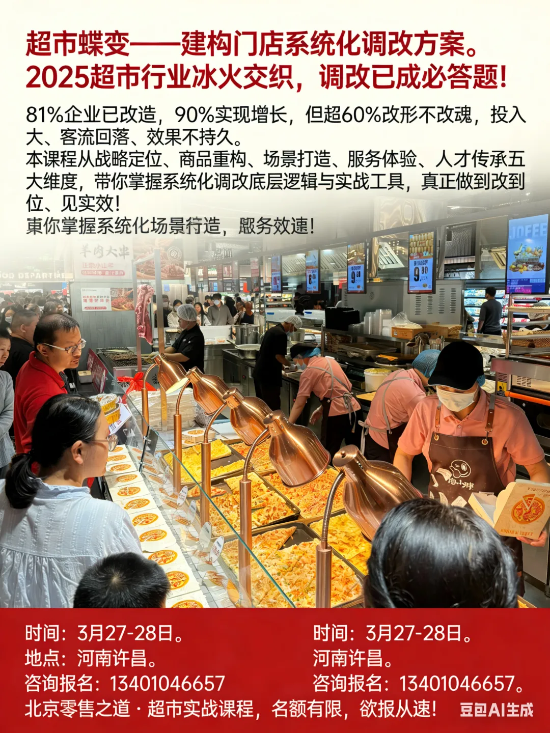 2025年,中国超市行业在冰火交织下不断地持续分化与进化。一方面是传统大卖场在加速洗牌,而另一方面是深耕“质价比”和“体验感”的企业在逆势突围。面对困境,“调改”成为了2025年最为核心的关键词,其中中国连锁经营协会数据显示,81%的连锁超市企业已实施门店调改,其中90%以上实现业绩增长。但另一组数据同样触目惊心:仍有超过60%的调改项目“改了形没改魂”,投入巨大、客流快速回落、损益数据不容乐观是一部分调改门店的通病。为什么同样的门店改造,有的店起死回生,有的店昙花一现?基于此,我们制定《超市蝶变——建构门店系统化调改方案》,帮助学员从战略定位、商品重构、场景打造、服务体验、人才传承五个维度,系统性掌握调改的底层逻辑和实战方法。