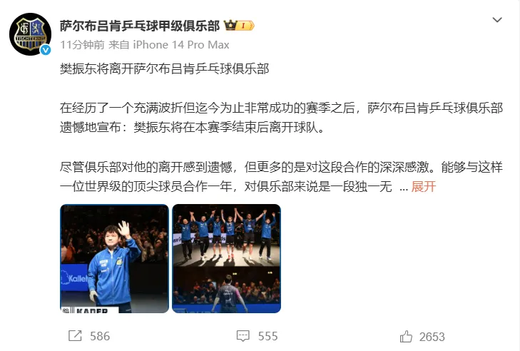⭐3月16日,萨尔布吕肯乒乓球俱乐部宣布:樊振东将在本赛季结束后离开球队。樊振东表示,这是职业生涯中一段非常特别的经历。不过在职业生涯的这个阶段,也已经准备好迈出新的步伐。详情>>