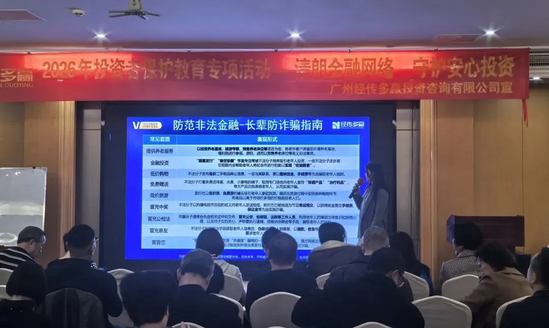 为深入贯彻中央金融工作会议精神,积极落实有关防范打击非法金融活动的工作部署,进一步提升投资者防范非法金融活动的意识,增强其风险识别能力,三月,广州经传多赢投资咨询有限公司(以下简称“经传多赢”)以“2026年3 · 15国际消费者权益日”专项活动为契机,常态化开展相关投资者教育保护宣传活动,通过系列活动向投资者传递金融市场基础知识,揭示金融市场的隐藏风险。
