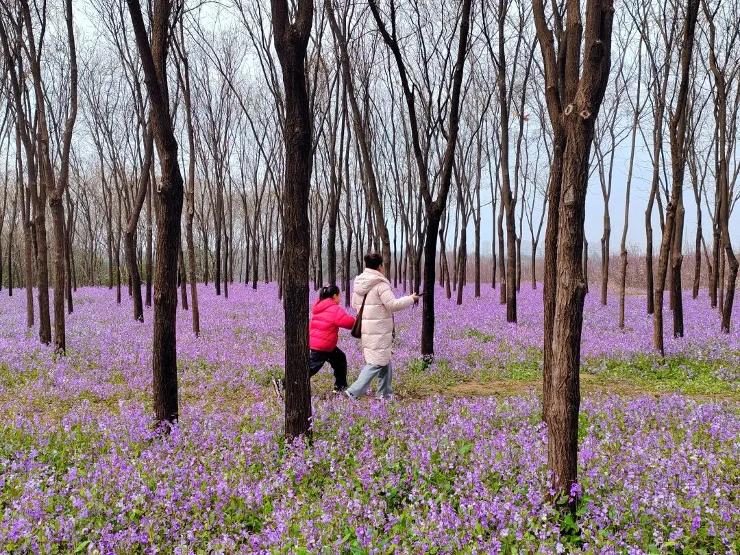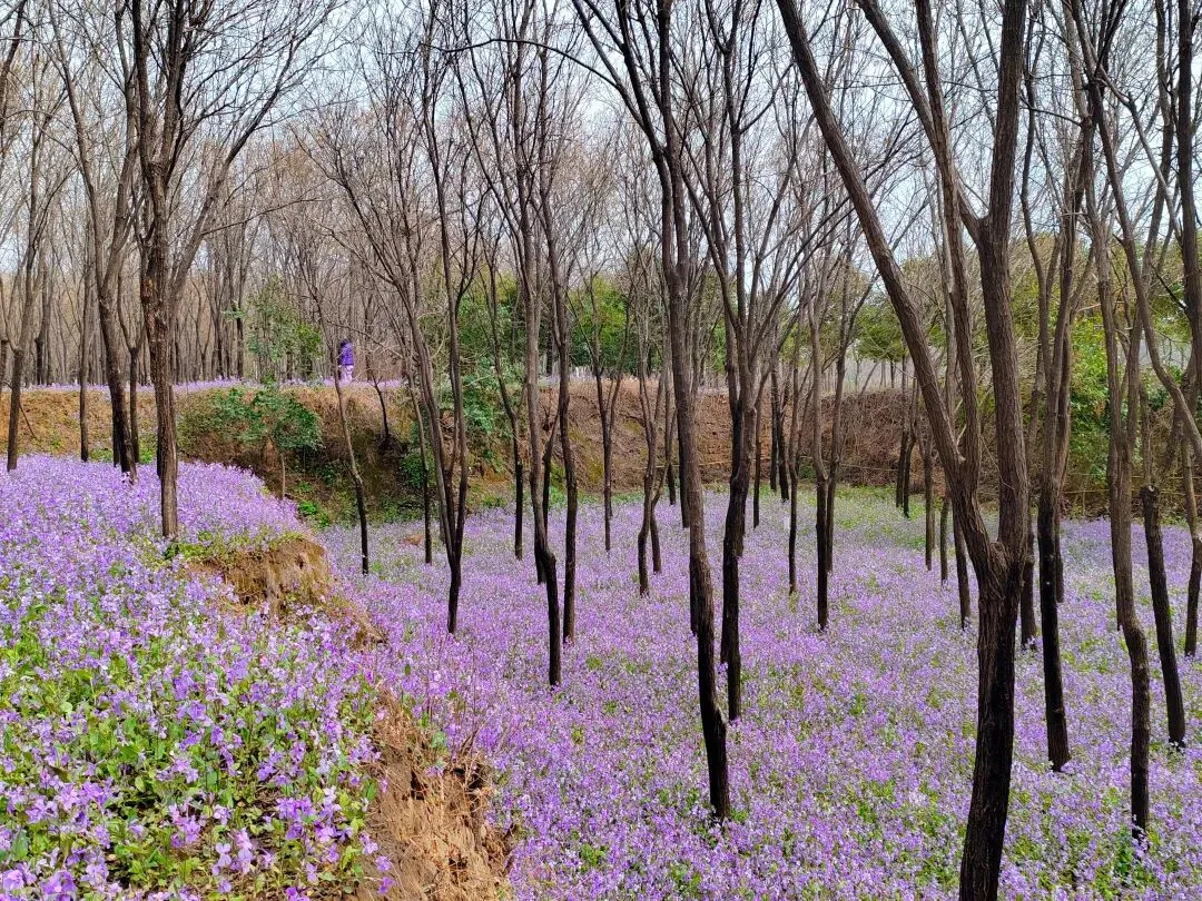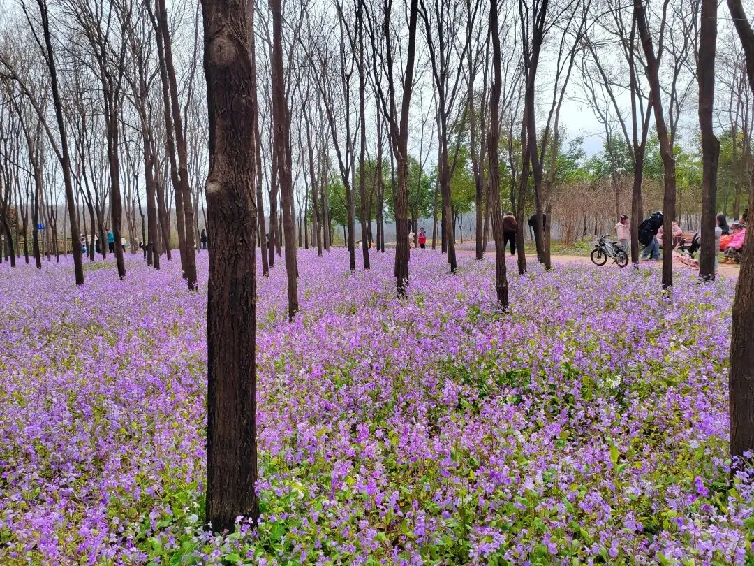 当视线穿过葱郁的林木,一片望不到边的紫色骤然撞入眼帘,桐之韵广场到了,不用说,二月兰的主场,就此开启。