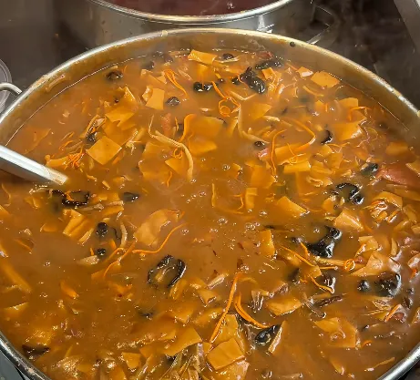 胡辣汤:牛肉、面筋、粉条搅进自家香料。早点铺必吃。