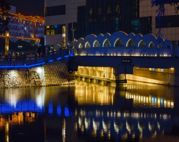 夜里其实没什么大事。护城河灯光绵软,老人推着小车,偶有小孩吹泡泡。夜市老板摇着蒲扇翻着锅,小吃摊边三五个人闲唠,猫在桌下蹭脚。这里的夜很淡,很缓,像一首清唱的小曲,没高潮,但能哼很久。