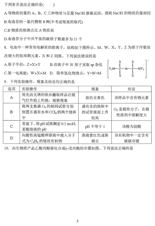 河南省郑州外国语学校2025-2026学年下期高三年级调研6考试试卷(3.12-3.13)化学试卷