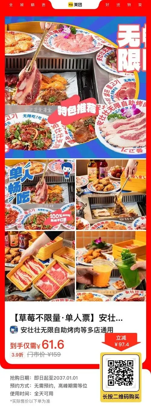 草莓控+烤肉党集合!🔥安壮壮自助放大招,61.6元实现草莓自由+烤肉自由~