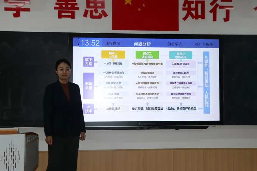 比赛过程中,参赛教师严格践行OBE教学理念,立足学科特色与学生认知特点,将人工智能技术、行业前沿实践案例与课堂教学深度融合,探索“岗课赛创一体化”等新型教学创新模式,课程思政元素与专业知识自然交融,尽显扎实的教学功底与创新的教学思维。各赛道亮点纷呈,人工智能赛道杨玉老师破解教学三大痛点打造数智课堂,工科赛道童振龙老师构建闭环式BIM人才培养生态,文科赛道赵卓星老师打造英语演讲课程教学创新体系,课程思政赛道教师则实现价值引领与专业教学的深度结合。