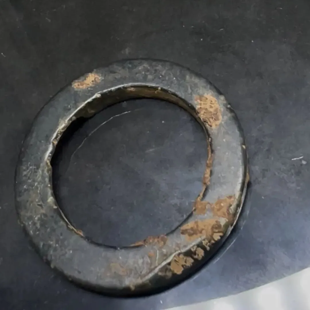 第三件是一个战汉的青玉环子,铁锈附着,味道很不错,可惜一面有老磕,幸运的是没有断绺!