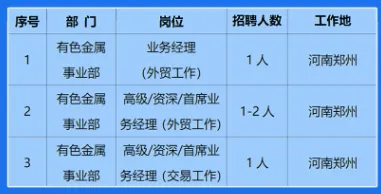 (4)具备较强的风险管控意识与能力,熟悉国际贸易业务全流程核算流程、海关监管政策及有色金属矿产品行业规范及相关法律法规。