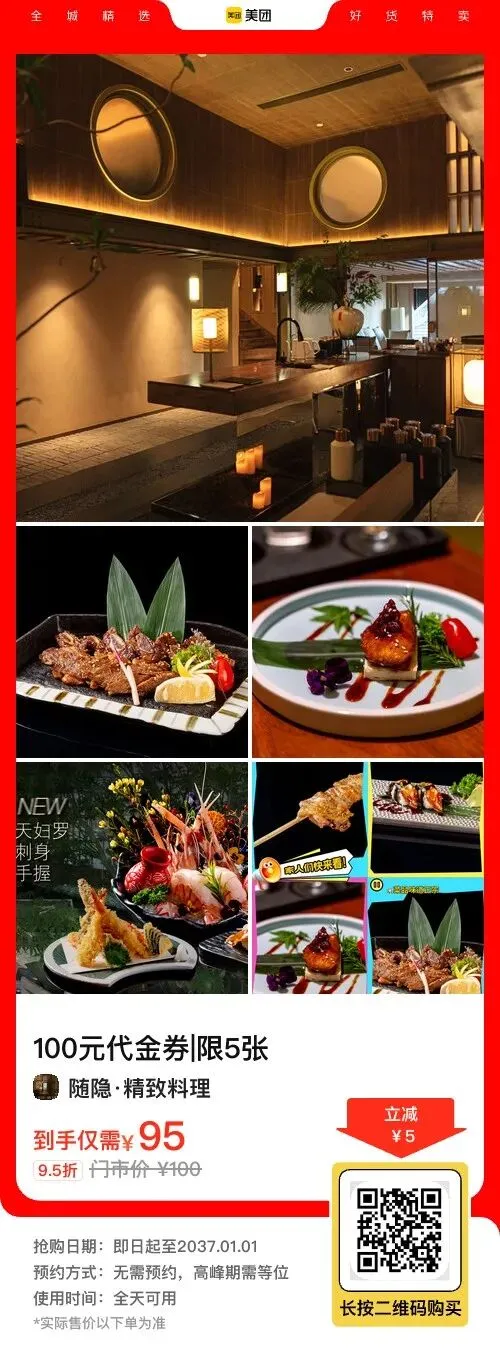 聚餐不知道吃啥?🔥随隐·精致料理9.5折代金券囤起来~