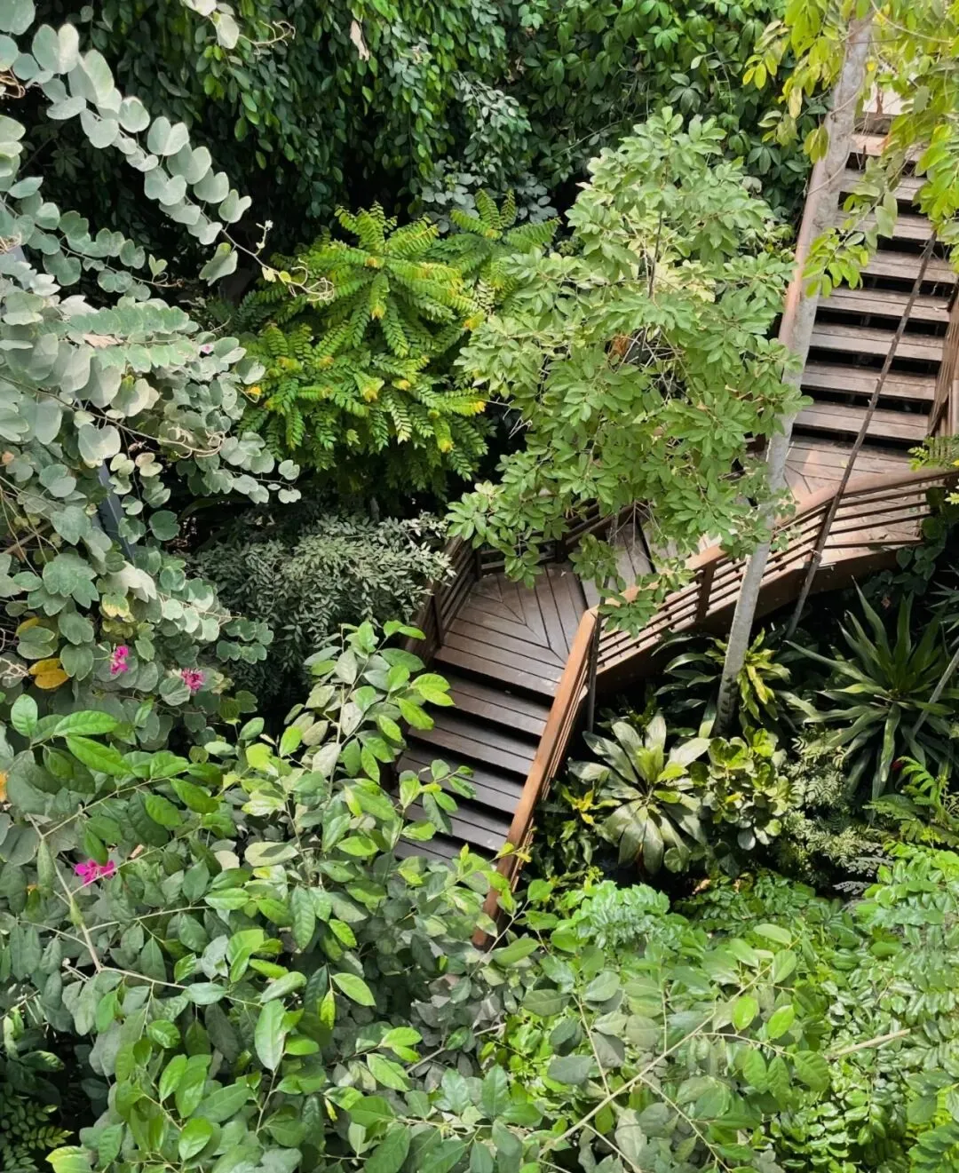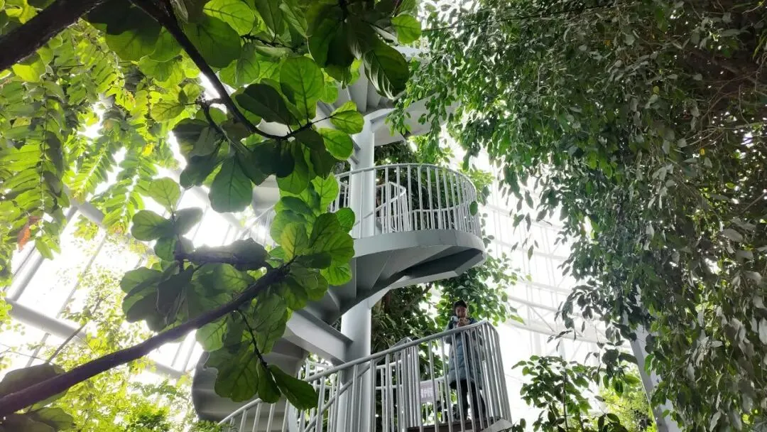 这里藏着一个网红旋转楼梯,白色的阶梯盘旋而上,被绿植环绕,无论从哪个角度拍,都超级出片!沿着楼梯慢慢上升,仿佛自己也变成了一只雨林里的飞鸟,从“树端”俯瞰整个植物区。