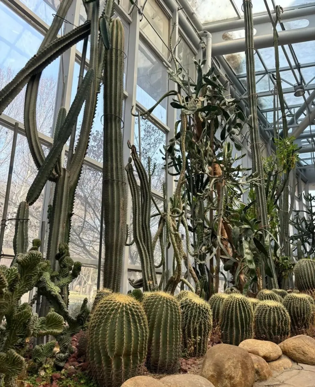而视线一转,沙生植物区里,巨大的仙人掌挺拔矗立,有的比人还高,浑身是刺,却开出娇艳的花朵,这种反差萌让人惊叹。