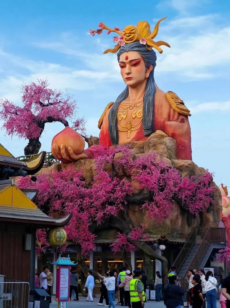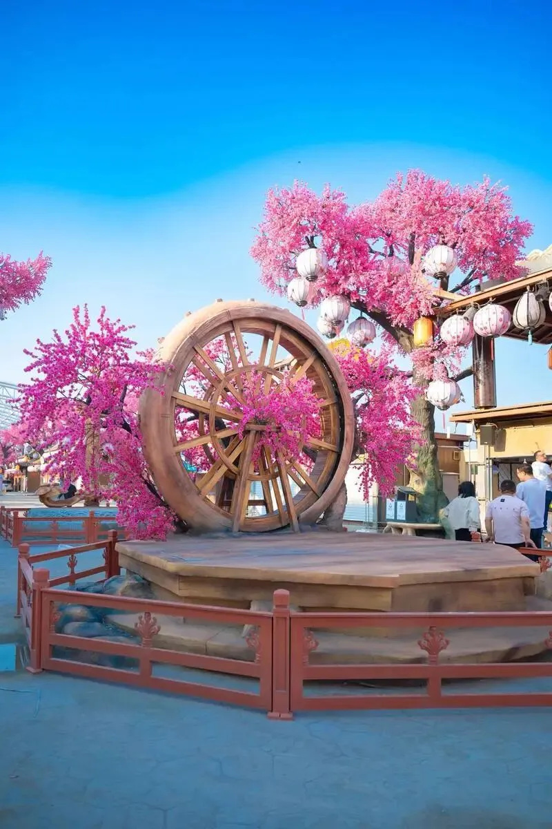 逛完古村,前往梦幻桃花源,一站式逛吃游玩超方便。以《桃花源记》为创意内核,打造了特色商街、沉浸式剧场等板块,集吃、住、游、购、娱于一体。 整条街区干净整洁,风格清新亮眼,不用走太多路,就能慢悠悠逛遍特色小店,尝尝肥城本地的桃味小吃、农家点心,口感清淡不油腻,很符合中老年口味。