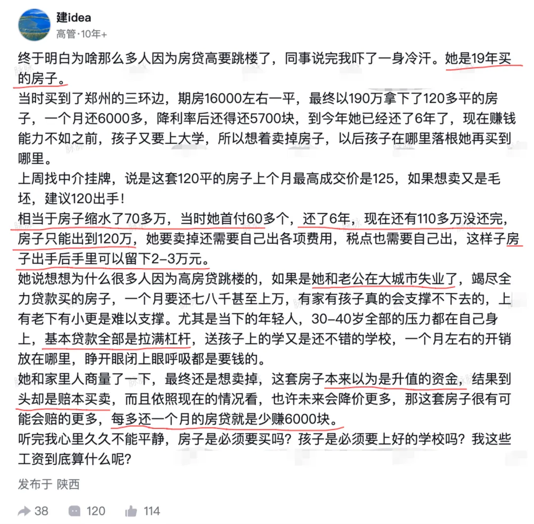 图片现在这套房的挂牌总价只剩120万,剩余贷款还有110多万。要是现在出手,扣掉税费、中介费,到手能剩的也就两三万。