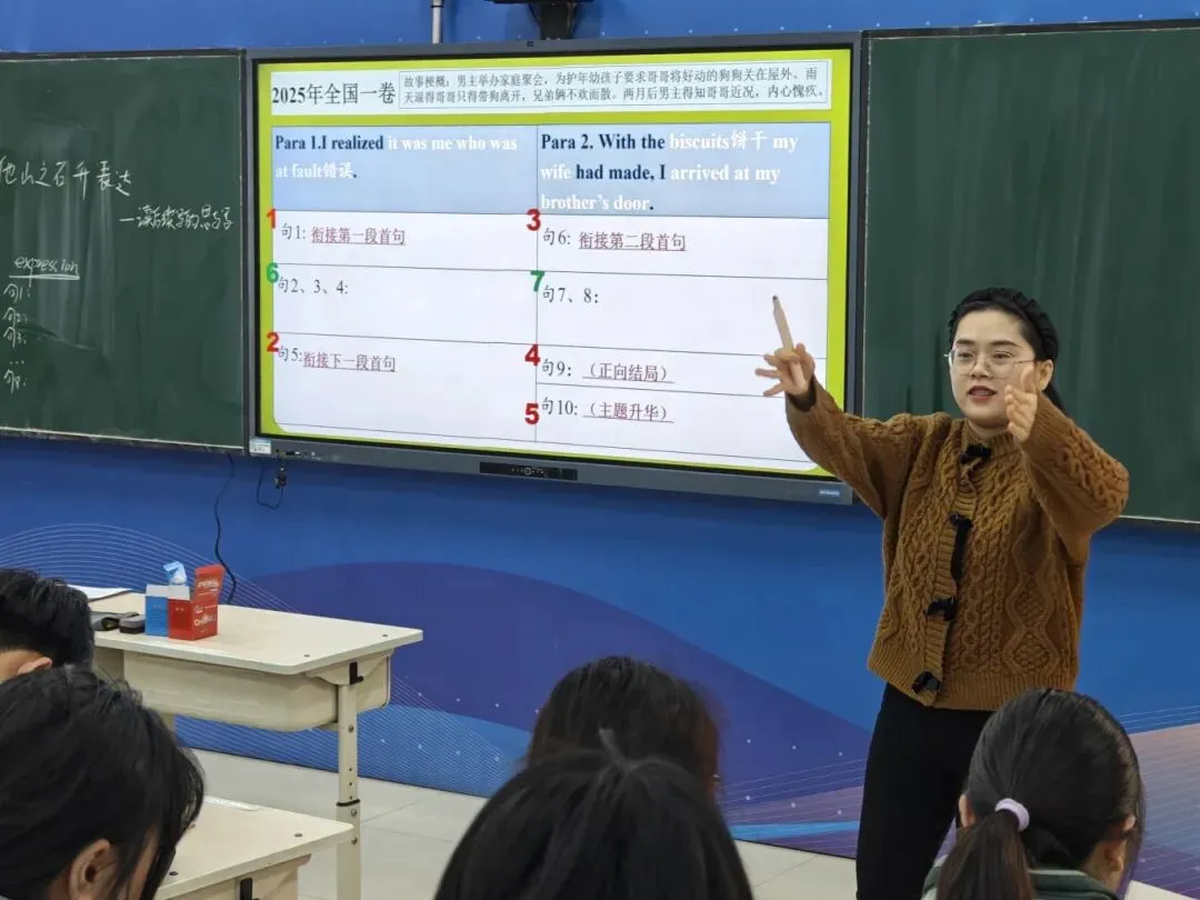 郭梦梦老师聚焦高三英语读后续写重难点,带来专题教学课。紧扣高三备考实际,开篇以范文对比让学生感知高分写作要素,系统讲解“十句五定法”,结合高考真题拆解结构框架,提炼高频高级句型,通过“原句赏析-句型提炼-考场仿写”实现以读促写。并以《西游记》经典片段设计模拟题,让学生小组合作完成写作任务,将传统文化融入课堂,打通读后续写“学-练-考”闭环,为高三英语写作教学提供实用范式。