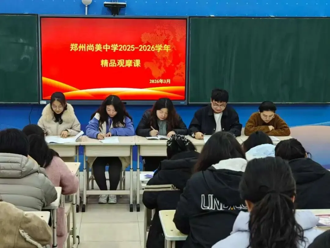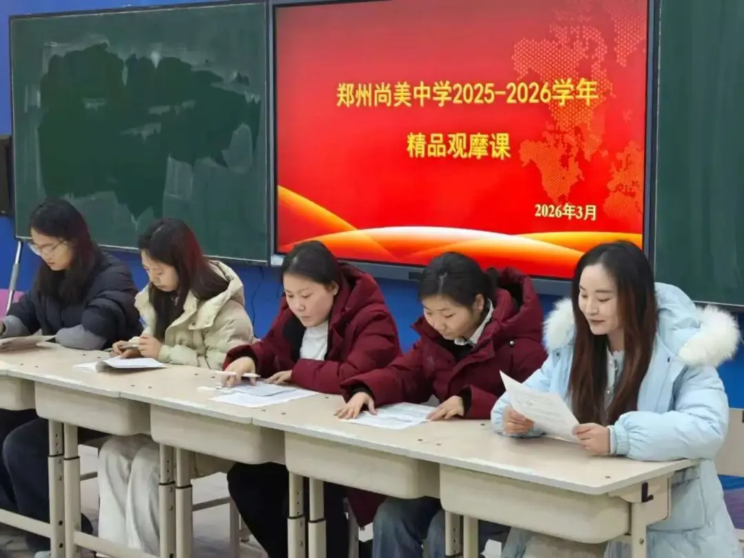 为发挥优秀教师示范引领作用,促进教学经验交流,提升教师教学能力与课堂质量,3月12日下午,郑州尚美中学开展 2025-2026 学年精品观摩课活动,语文组袁艺玮老师、英语组郭梦梦老师带来两节设计精巧、亮点十足的优质课堂,全校教师共同观摩学习。