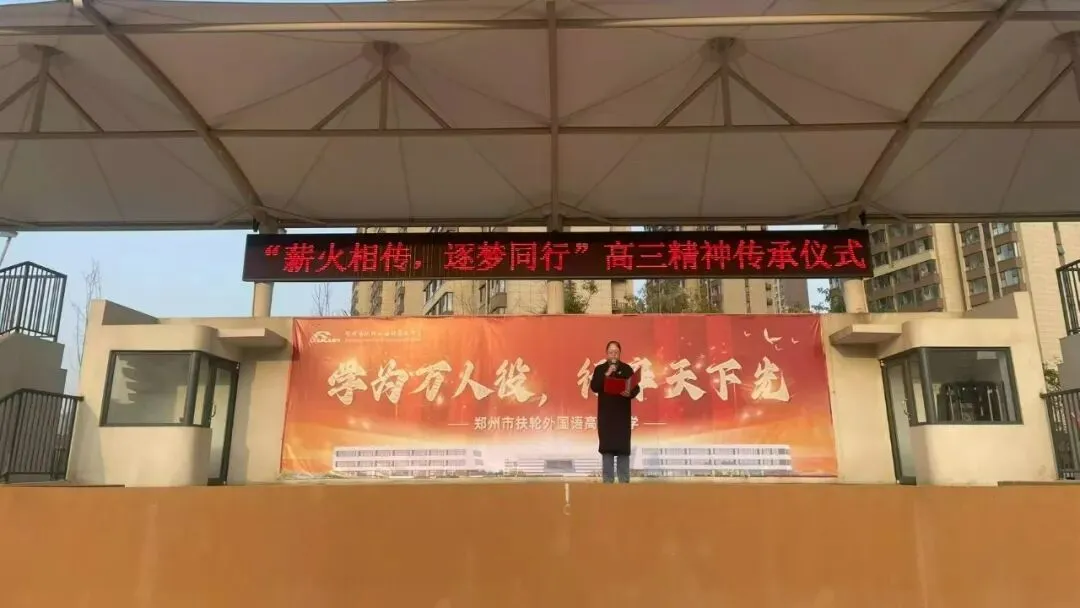 为传承校园精神、凝聚备考力量,3月16日,郑州扶轮外国语高级中学举行“薪火相传,逐梦同行”高三精神传承主题升旗仪式。全校师生齐聚五星红旗下,共同见证青春旗帜的传承与接力。