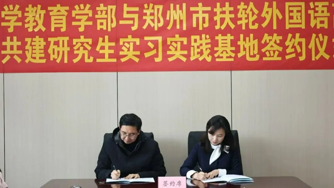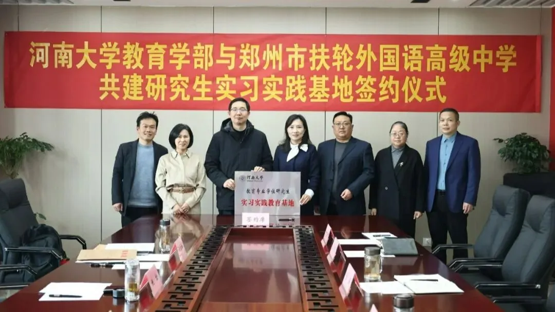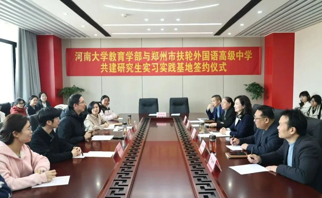 春山可望,薪火相传。3月16日下午,郑州市扶轮外国语高级中学与河南大学教育学部共建研究生实习实践基地签约仪式在该校顺利举行。此次签约旨在搭建高校与中学协同育人平台,深化教育教学合作,为培养高素质教育人才奠定坚实基础。仪式由郑州市扶轮外国语高级中学副校长朱鹏举主持,河南大学教育学部领导、教授,扶轮外高学校领导及研究生代表共同出席。