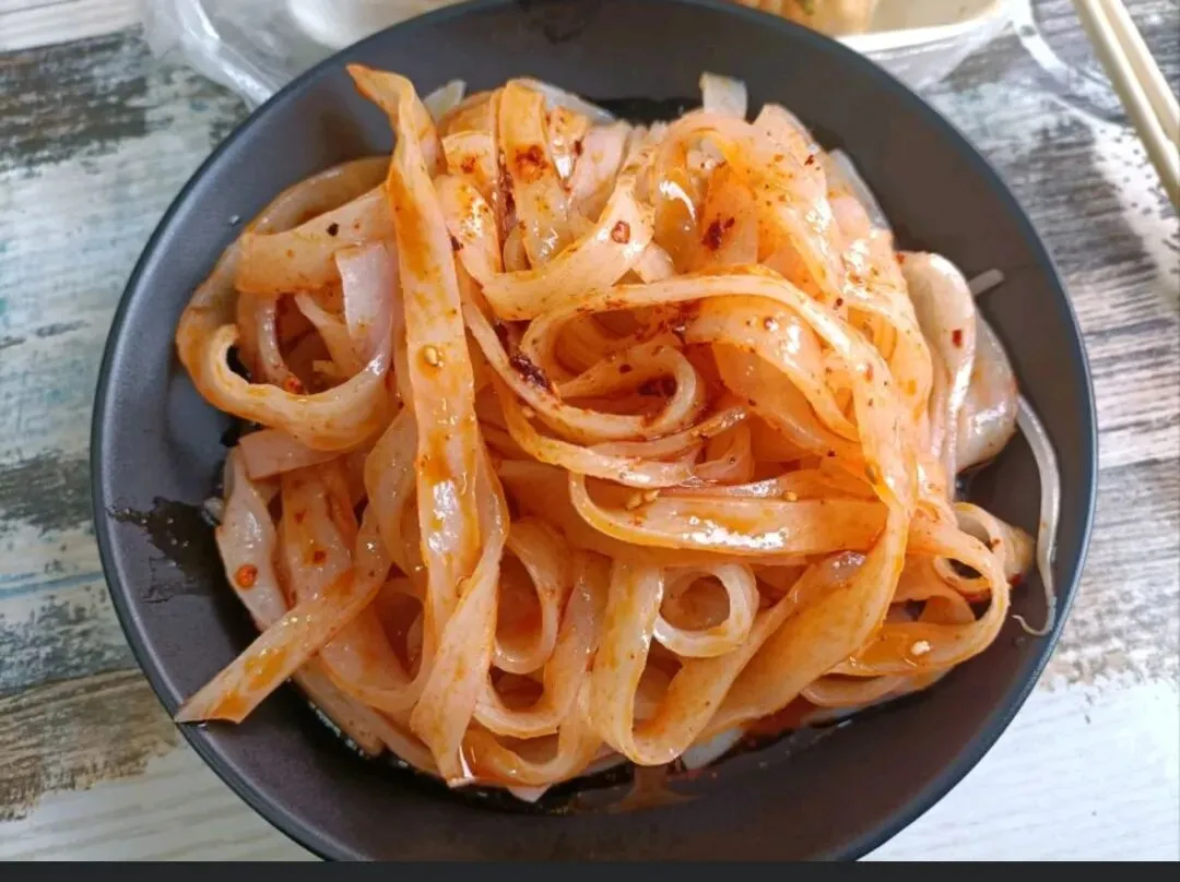 他家擀面皮有两种口味,酸甜口和咸香口的。