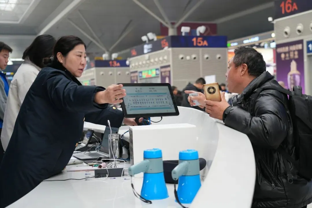 郑州站聚焦旅客需求,不断升级便民服务:在候车区、服务台配备急救、便民工具,增设充电、行李寄存、快递等设施;开设务工、学生专列,推广线上预约、免费退票、老年人电话购票等服务。依托 “心馨” 党员服务台、“丹丹服务岗”,为重点旅客提供全流程闭环帮扶。