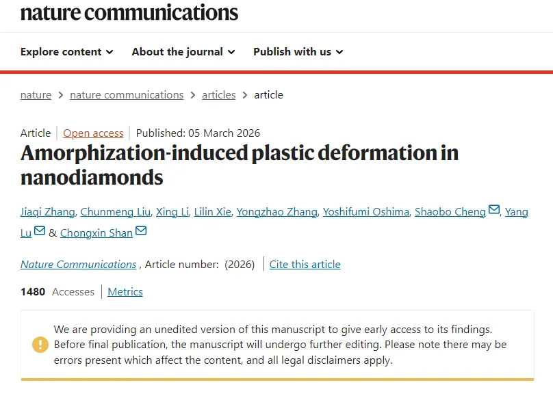 郑州大学单崇新教授与香港大学陆洋教授及其研究团队针对纳米尺度金刚石颗粒,发现了一种全新的变形机制,并通过创新实验揭示了金刚石在纳米尺度下超大塑性的实现方式。这项研究成果被发表在《Nature Communications》期刊,并为金刚石材料的进一步应用提供了新的思路。