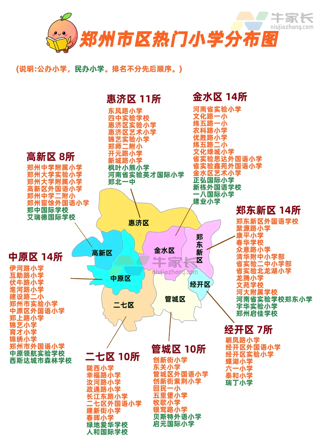 结合近期家长咨询热度,西柚老师整理了郑州各区关注度较高的小学分布图(排名不分先后,仅供参考):
