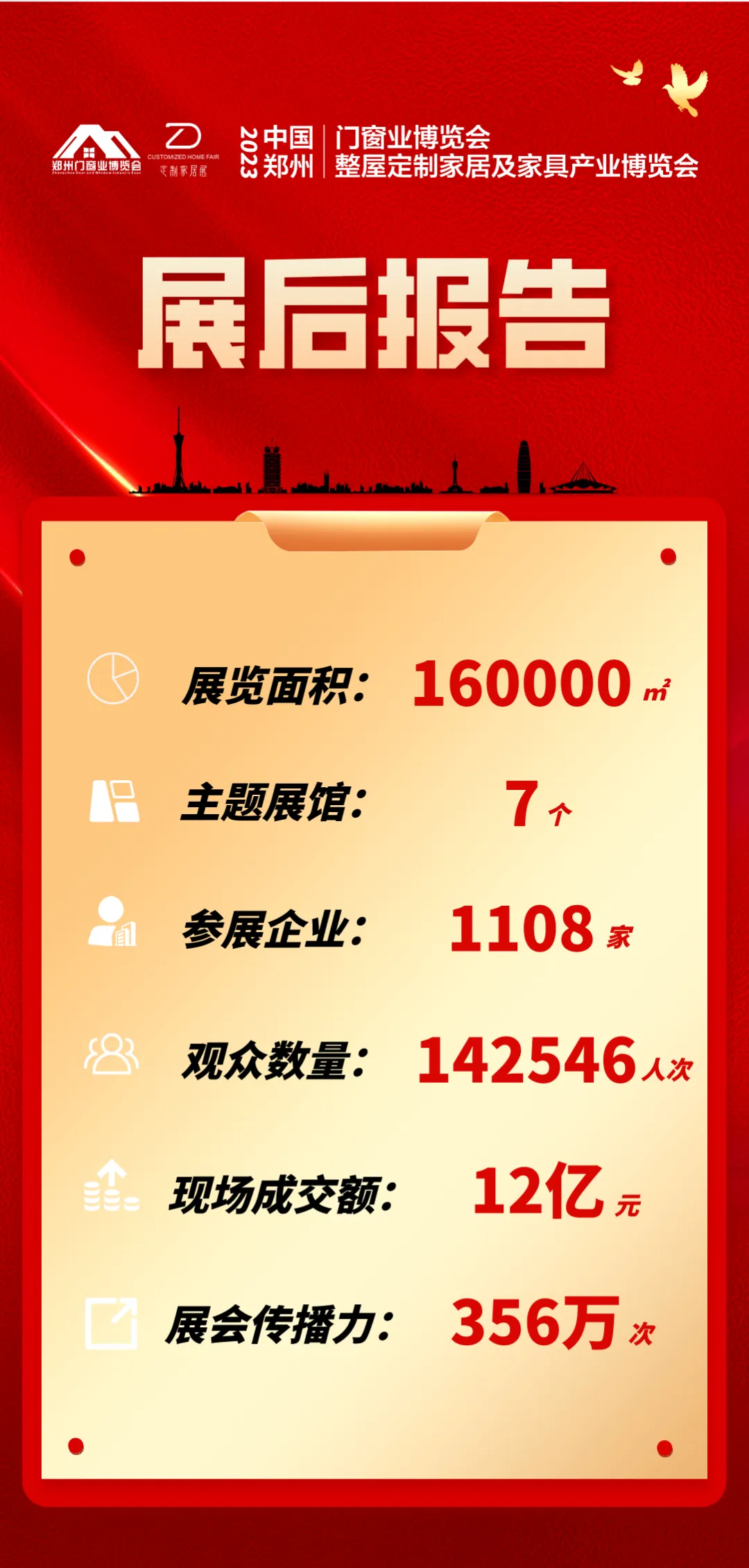 2023中国郑州门窗业暨整屋定制家居及家具产业博览会已圆满收官,在此衷心感谢行业所有同仁给予的支持与信任!组委会将继续不忘初心,奋楫笃行,依托雄厚的资源优势和丰富的办展经验,以展商和行业发展需求为己任,全力打造中西部门窗及定制家居领域高质量、专业化的商贸合作平台!