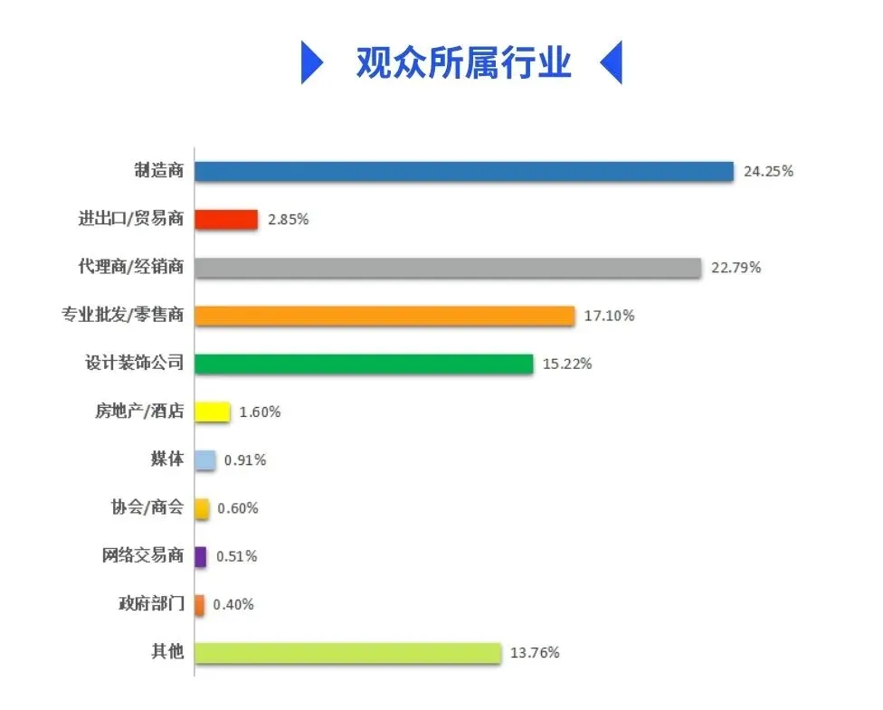 2023郑州门窗业暨整屋定制家居展观众类别广泛,其中生产企业、代理商/经销商、专业批发/零售商、设计装饰公司位列前四位。