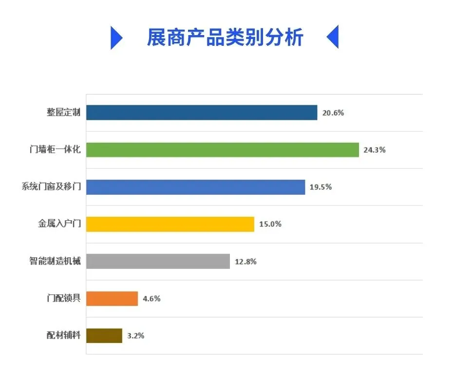 展品范围包括:整装木门、移门/推拉门、系统门窗、阳光房、淋浴房、入户门、庭院门、防火门、门配锁具、整屋定制、高端定制家居、木工机械、配材辅料等品类。展品类别划分更加全面合理,实现大家居产业链全面覆盖,呈现高效一站式展示效果。