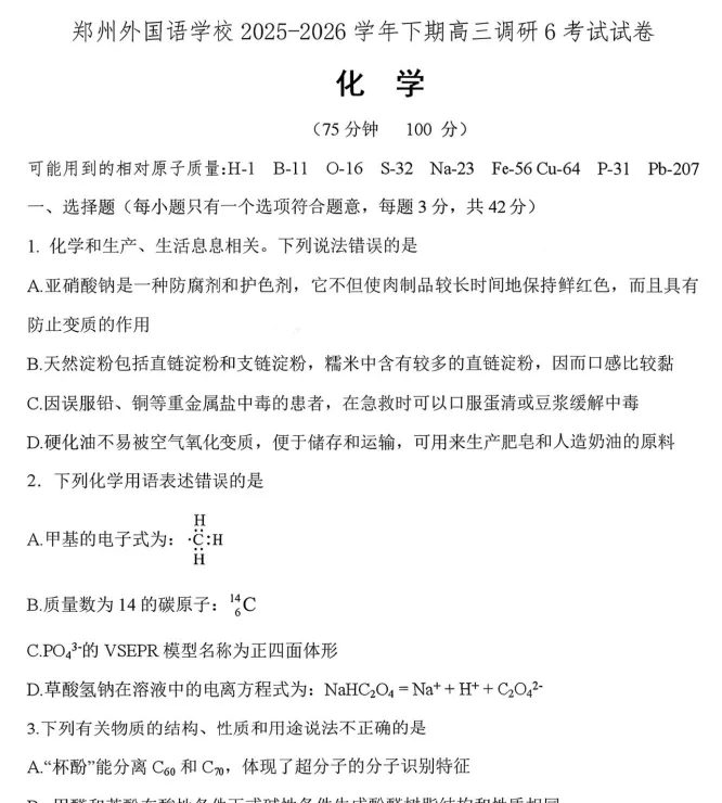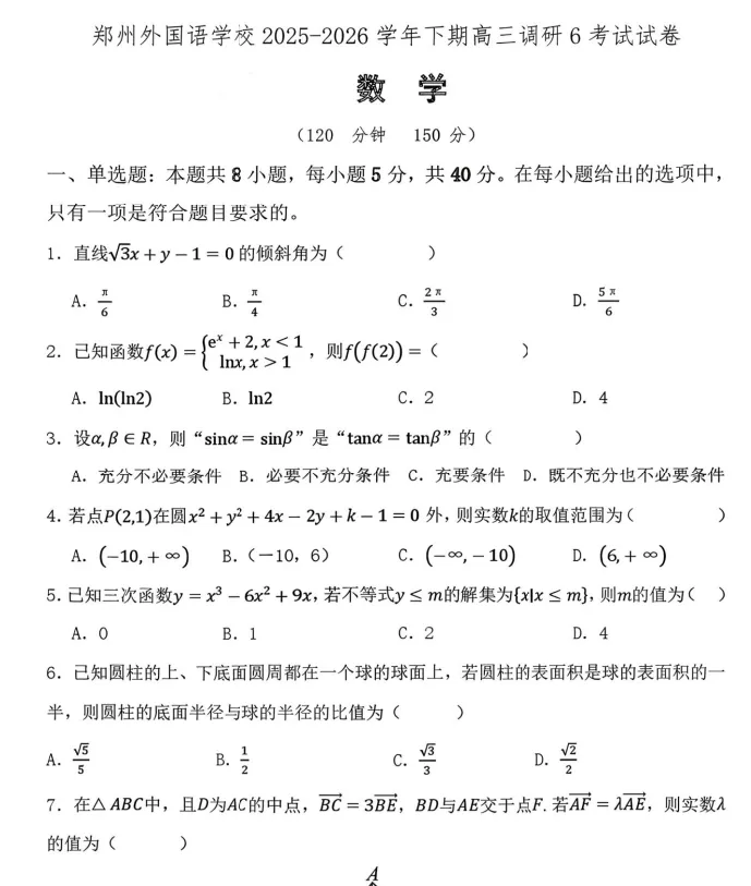 本公众号旨在分享试题资料,所有资源仅用于学习参考!如有侵权,请联系小编删除,谢谢!