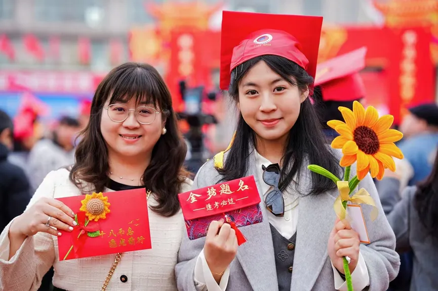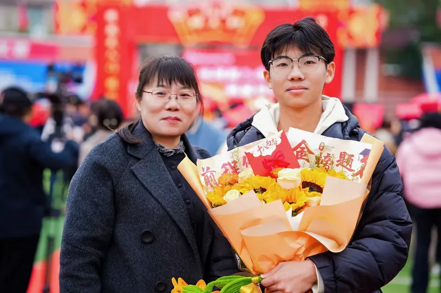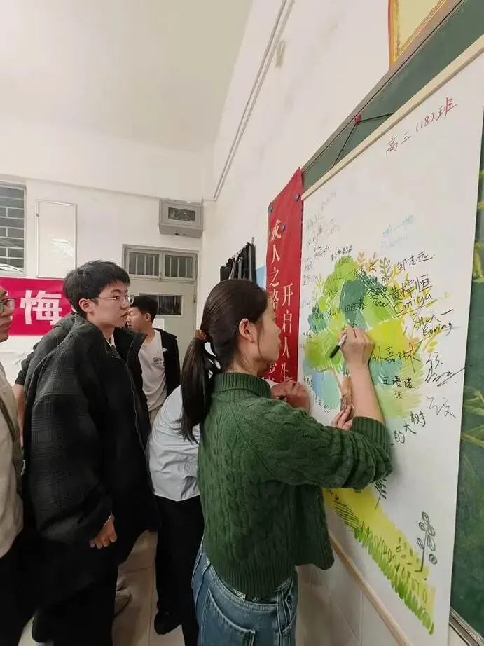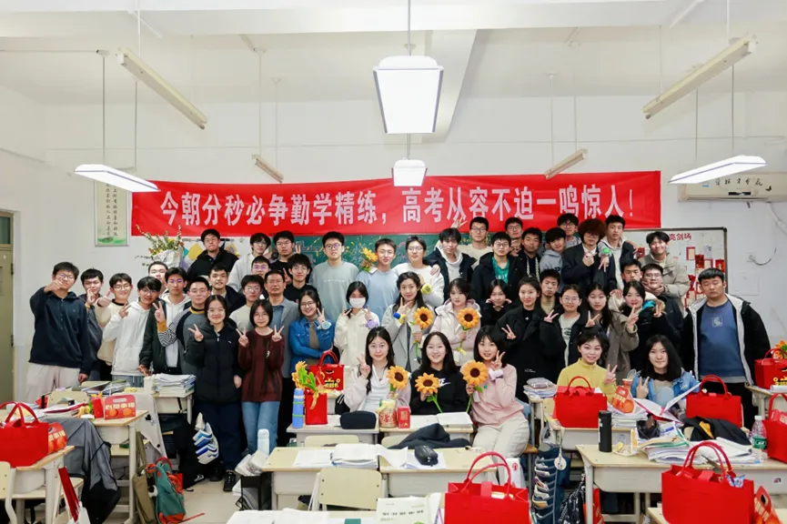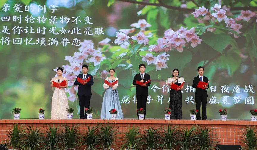 朝夕相伴的高三老师们,用充满学科特色的话语,为同学们送上了别样又真挚的祝福。语文老师用“土”味十足却情意深厚的话语寄语:“为天下英才,一饭三吐哺!高考必胜!”;数学老师送上诗意祝福:“愿你的人生像e^x,无论求导多少次,始终保持本真、向阳生长”;英语老师用温柔的英文寄语:“Flowers will bloom along the way, and so will your future”(前路有繁花,未来皆可期)……一句句幽默又温暖的祝福,赢得了同学们阵阵欢笑与热烈掌声,也为紧张的备考氛围注入了温情与力量。