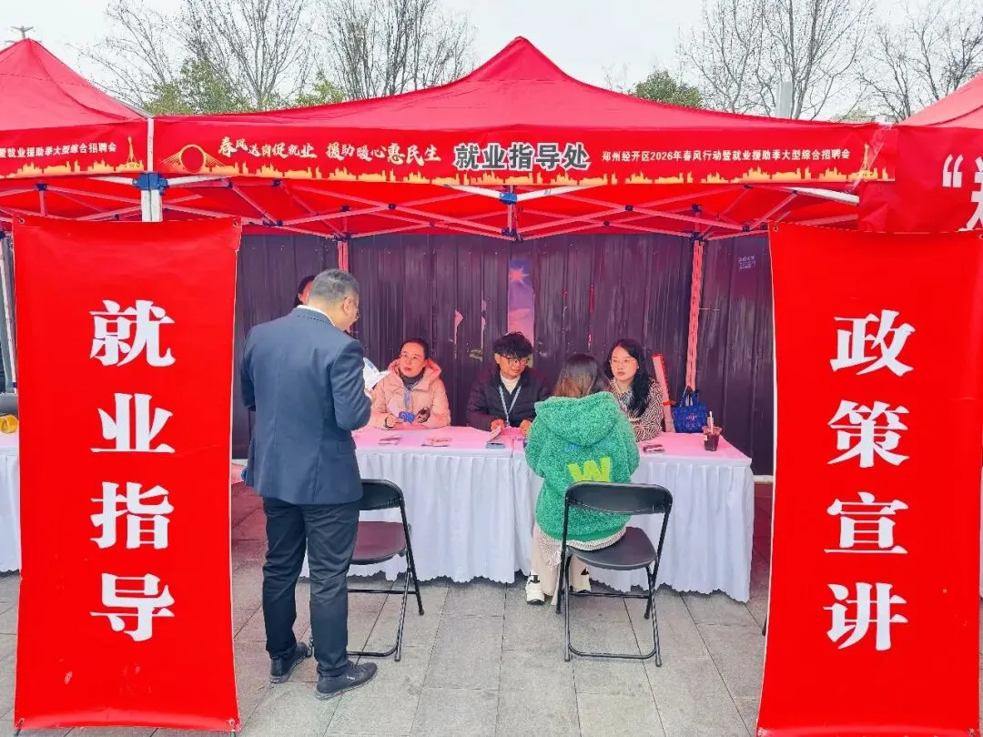 3月15日,郑州经开区组织人事和社会保障局在盛华里购物中心广场举办2026年“春风行动”暨就业援助季综合招聘会。本次招聘会以“春风送岗促就业 援助暖心惠民生”为主题,“线下+线上”双渠道,为求职者和用人单位搭建高效对接平台,助力实现更高质量充分就业。