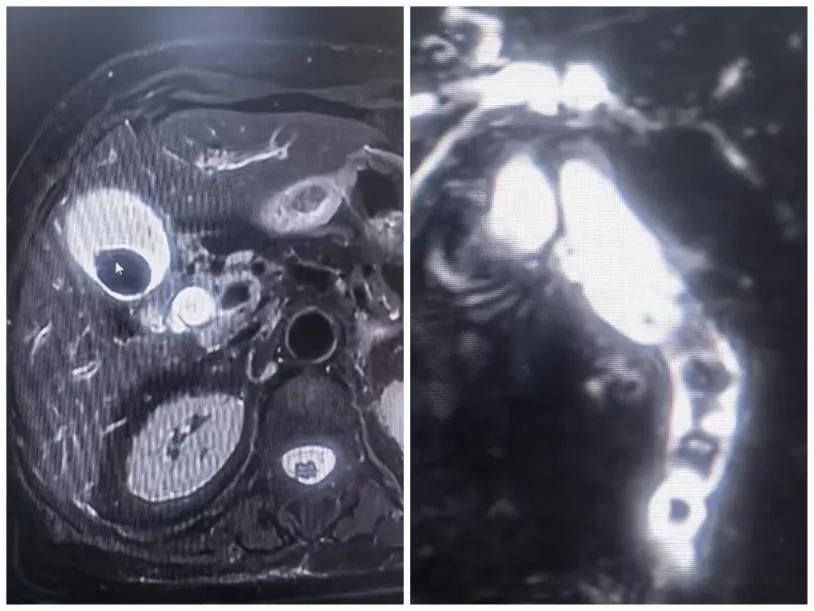 老人被紧急转运来时,情况十分危急:不仅胆囊多发结石合并急性胆囊炎,而且患有充满性胆管结石,引发了凶险的急性阻塞性化脓性胆管炎---重症胆管炎;如不能得到及时有效的救治,死亡率极高。