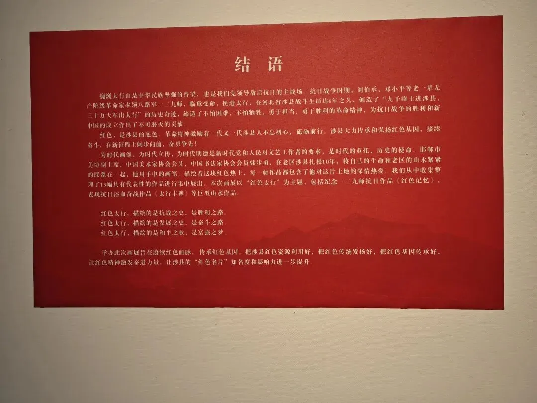 笔墨绘太行,丹心映红途。韩步勇先生扎根涉县十载,将抗战烽火与老区风骨凝于丹青。《太行丰碑》《红色记忆》里,山是英雄脊梁,水是革命血脉,让我们在水墨间触摸历史温度,赓续太行精神,让红色基因代代相传。