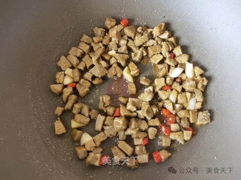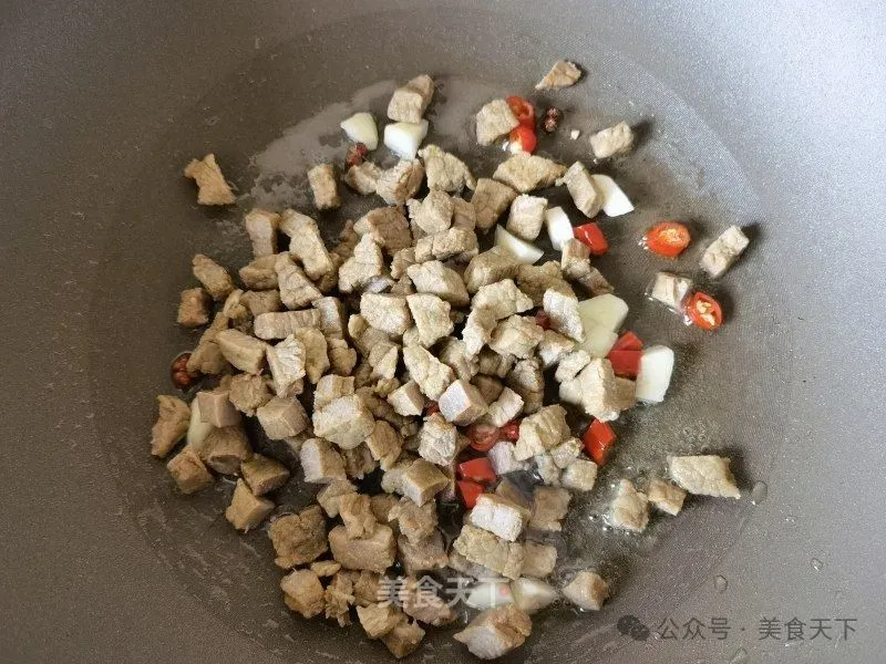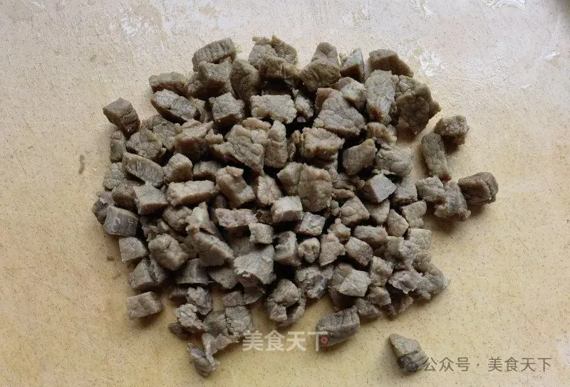 2. 熟牛肉切小粒。
