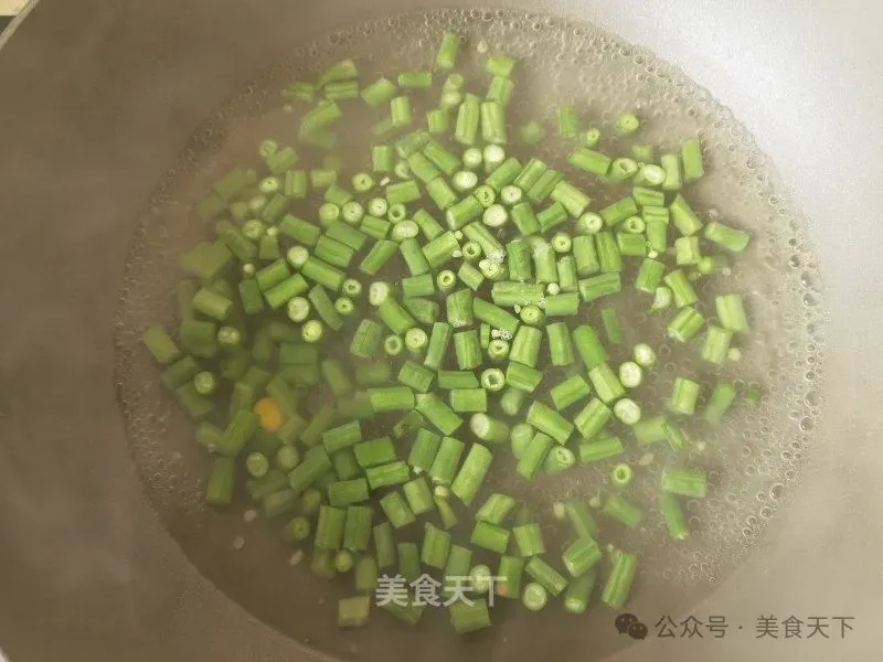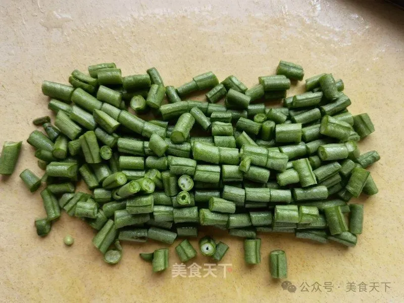 4. 豇豆洗净切小粒。