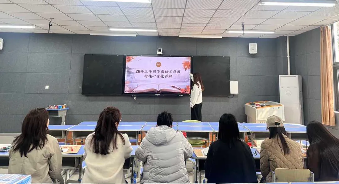 王亚培老师带领二年级组紧扣教材调整要点,围绕“识字、阅读、写话”三大板块展开研讨。重点优化随文识字与规范书写教学,强化朗读与词句训练。结合新增篇目,老师们深入探讨了如何在教学中自然渗透德育与文化传承,为后续的写话与情境运用教学奠定了坚实基础。
