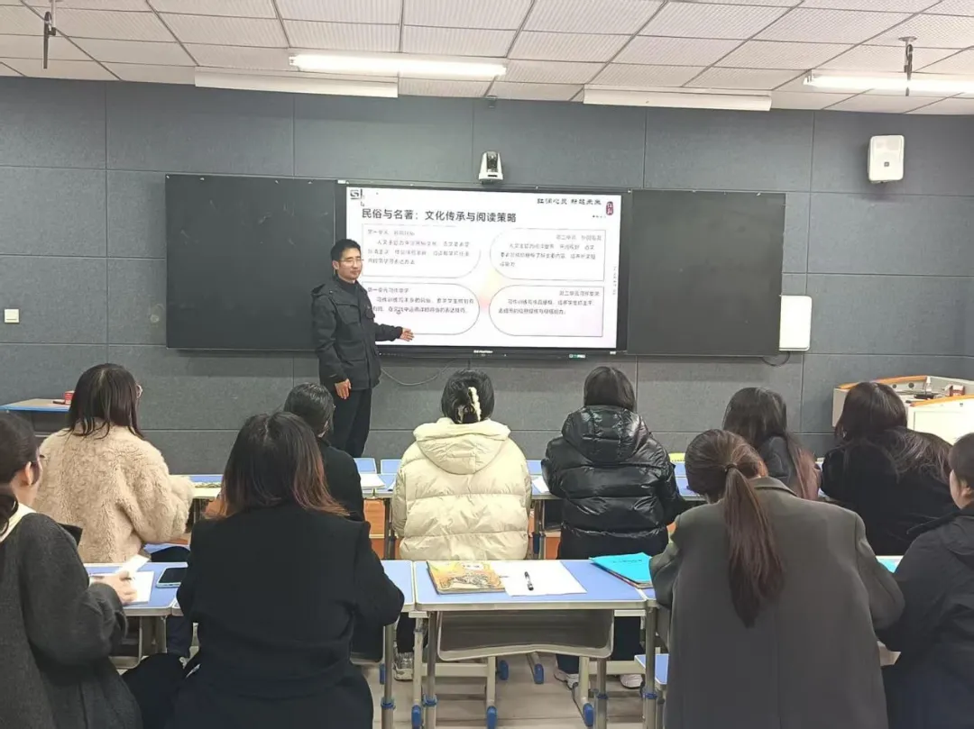 王延阁老师为六年级组进行了全面解析,涵盖“教材定位、阅读单元、变化策略”四大方面。培训重点探讨了毕业班的教学应对策略,帮助教师理清教学思路。本次教研不仅明确了教学方向,更对教师的专业成长与教学展望提供了有力指导。