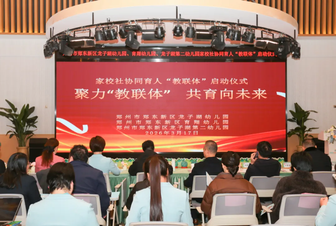 扛牢育人使命,回应时代命题。为深入贯彻国家及省市关于家校社协同育人的决策部署,落实立德树人的根本任务,2026年3月17日上午,郑州市郑东新区龙子湖幼儿园、育翔幼儿园、龙子湖第二幼儿园家校社协同育人“教联体”启动仪式隆重举行。