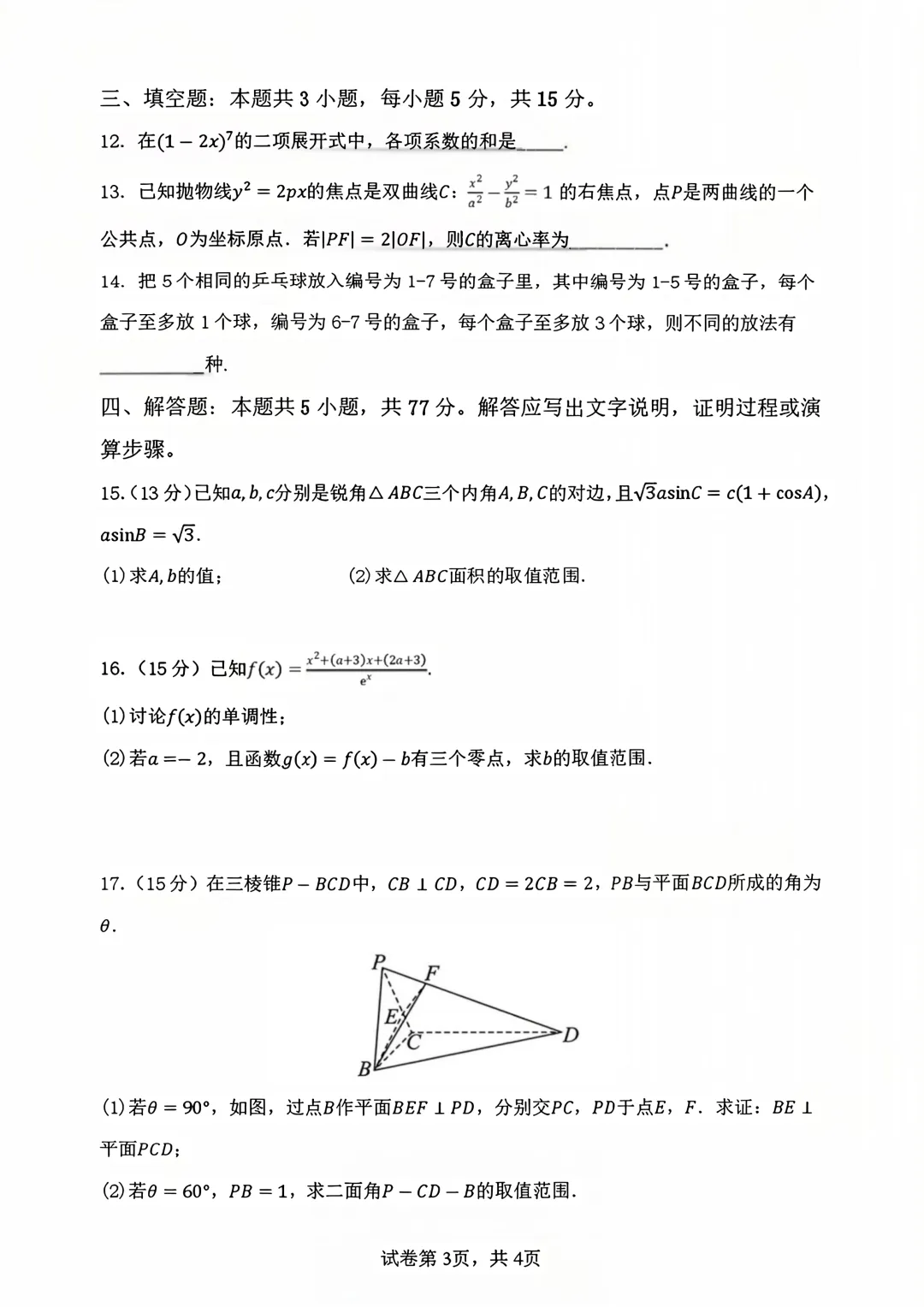 >郑州外国语2025-2026学年高三下3月份调研试卷及答案