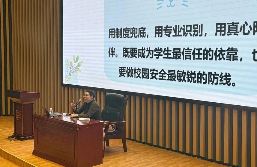 刘处长代表学校对闫纯苏主任的莅临表示欢迎和感谢。他指出,重点学生帮扶是住宿书院制育人模式的“底板”,是守护学生成长、筑牢校园安全防线的底线要求;学生团队管理是其“天花板”,是凝聚育人合力、提升人才培养质量的关键抓手,二者是学工工作的核心要义。他勉励参训人员,要怀敬畏之心提升专业识别与干预能力,持共情之态读懂学生深层诉求,树系统之观联动各方构建立体化育人网络,将专家智慧转化为育人实效,用心做好学生工作这份“良心活” 与“技术活”。