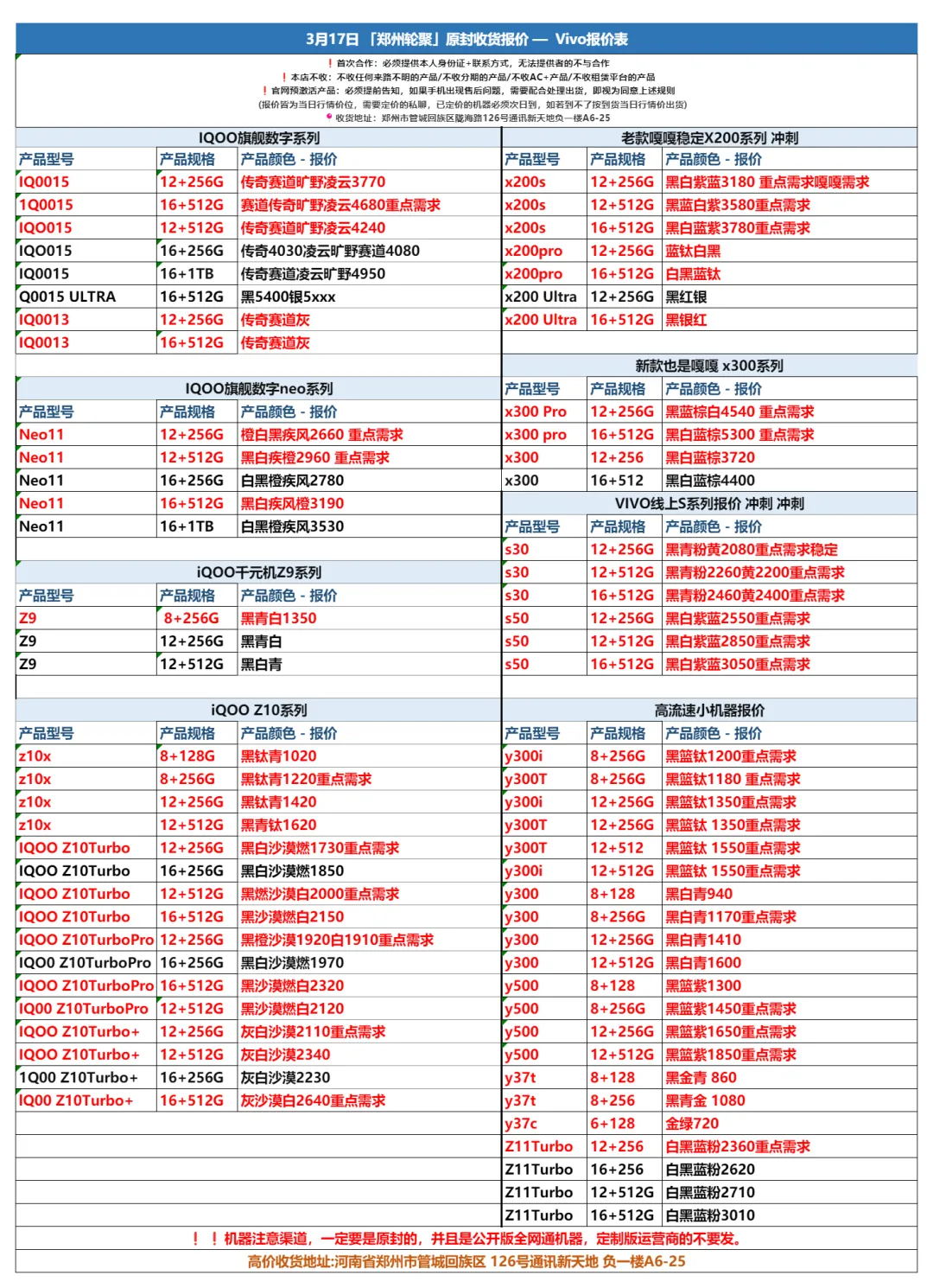 郑州东盛通讯新天地3.17号行情
