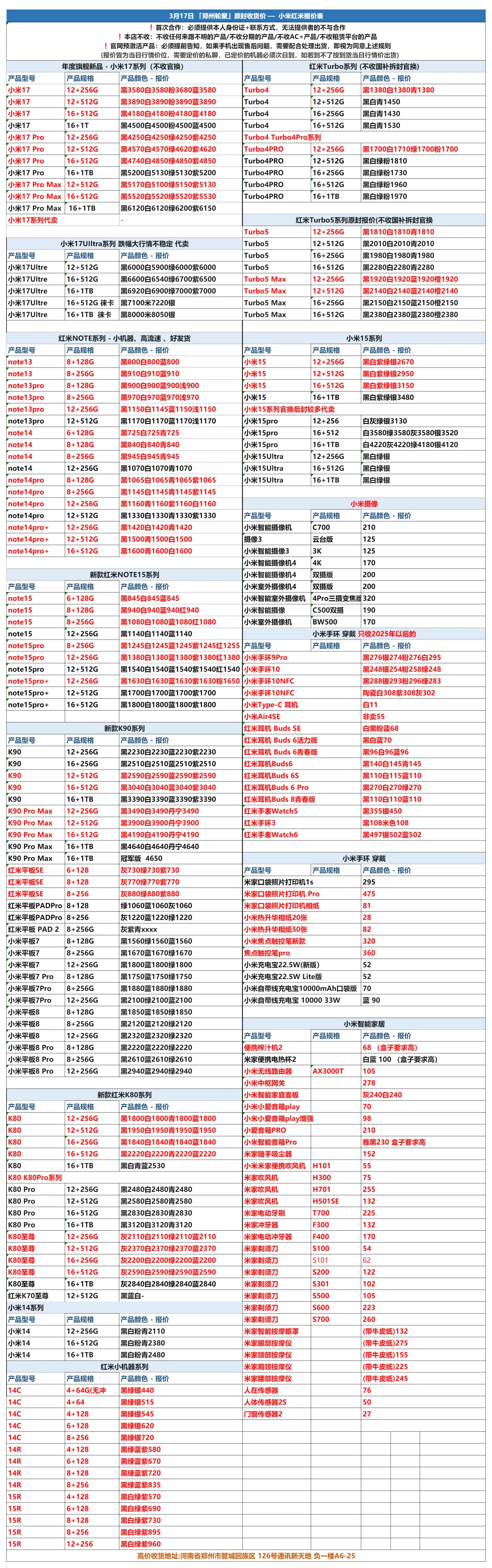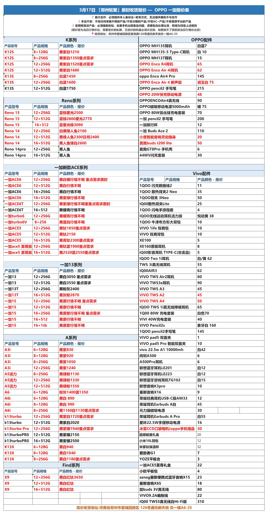 >郑州轮聚通讯 2026年3.17日数码报价更新