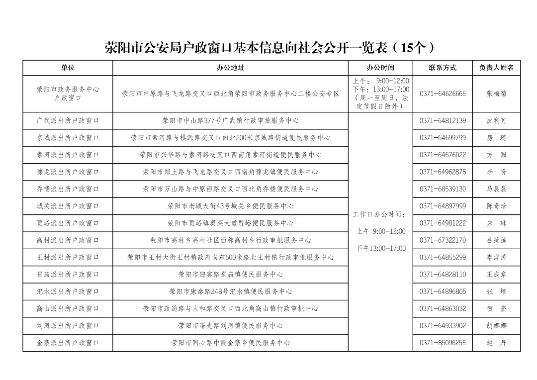 当前位置:首页>郑州>郑州荥阳市公安局户政窗口基本信息向社会公开一览表(20260204)