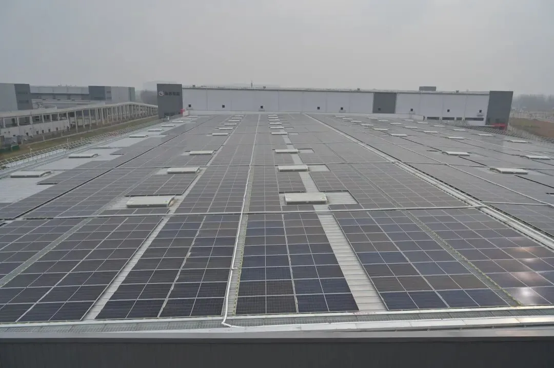走进润田供应链公司的厂区,抬头仰望,昔日空旷闲置的彩钢瓦屋顶如今已被整齐划一的光伏矩阵覆盖,成为一道独特的工业风景线。