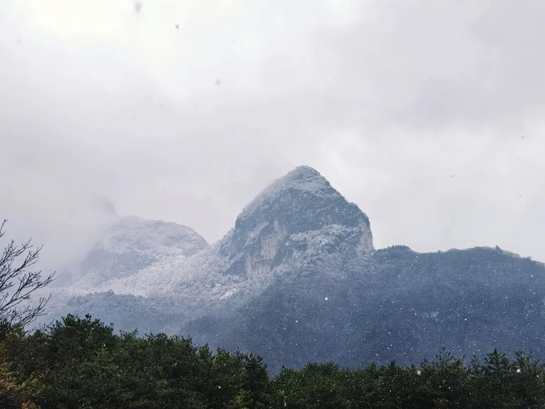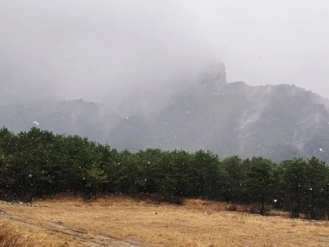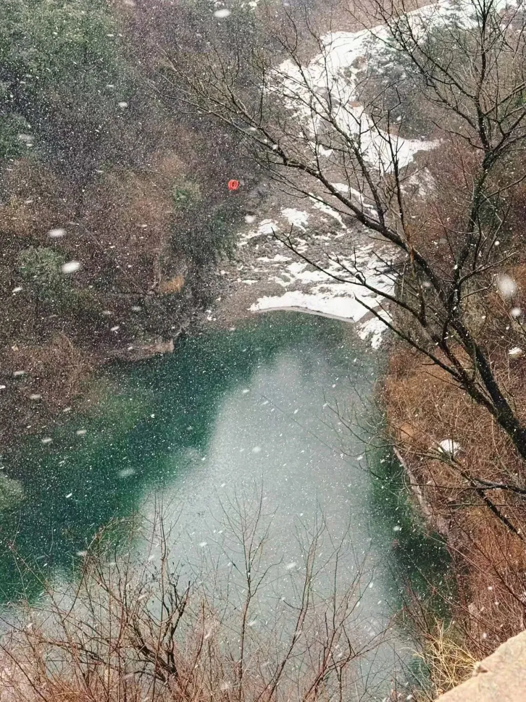 15点,雪基本停了,从这里回望龙水梯村方向,整个太行三层已经全白