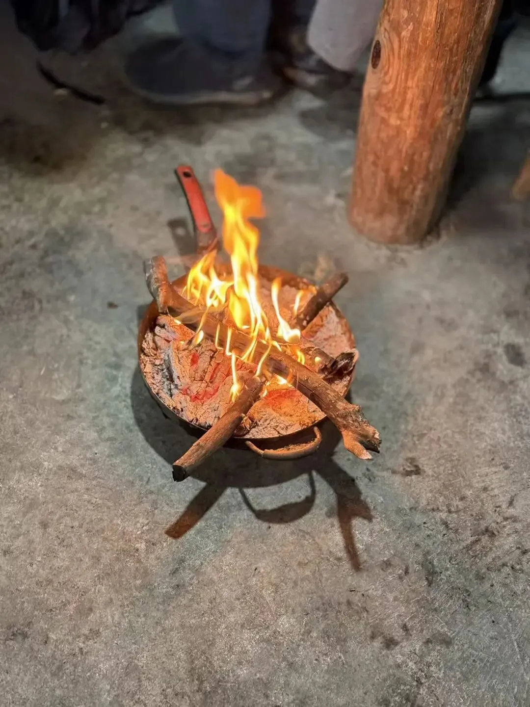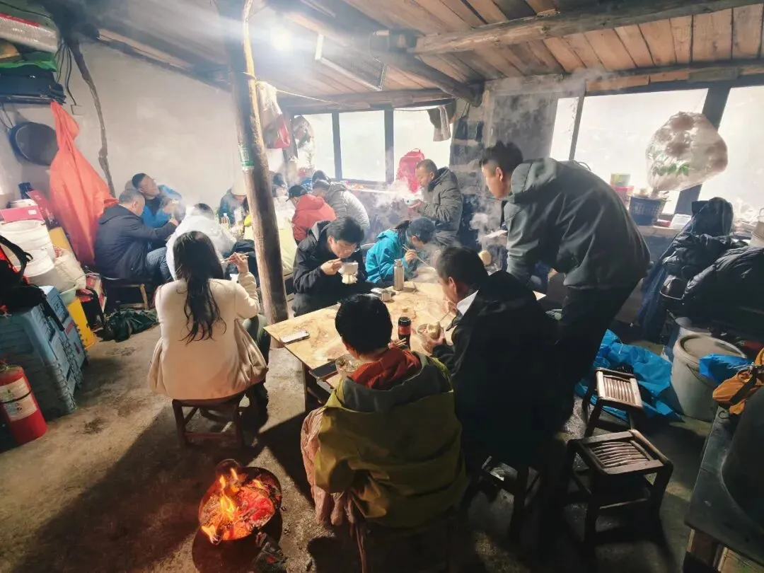 12点,在龙水梯老琚农家围着炭火盆,吃上了热乎的大锅菜