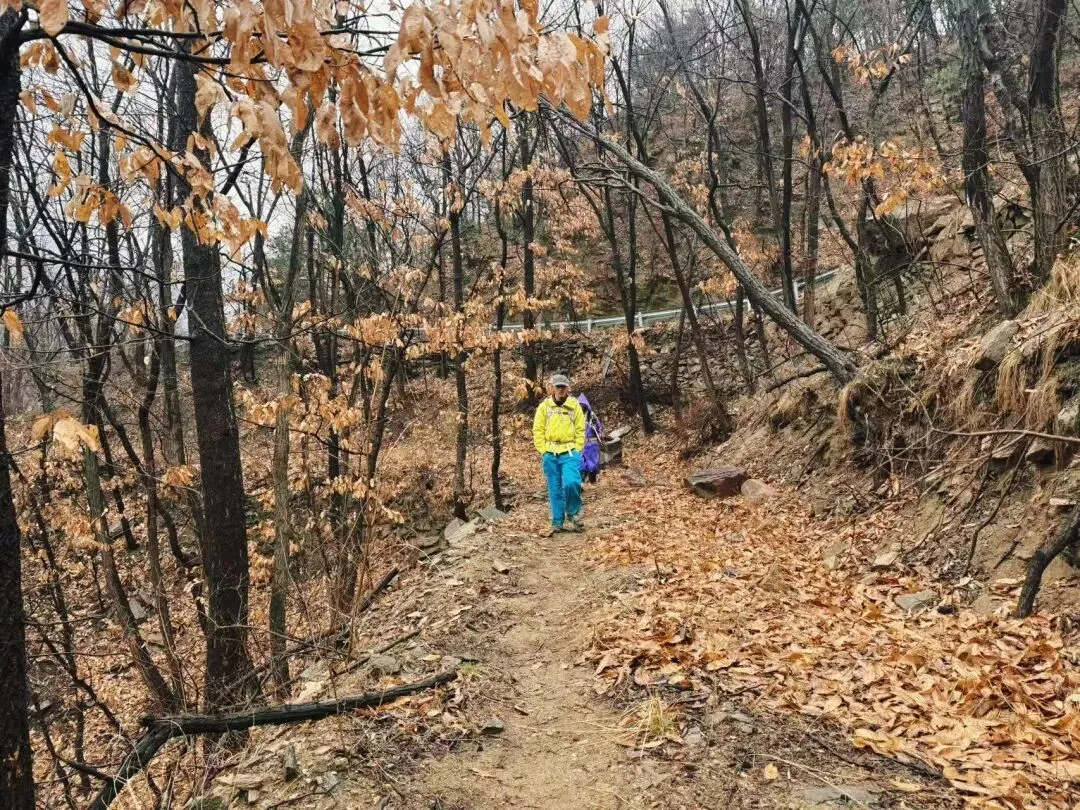 16点,走完盘山路,切入最后一段丛林小路,又是完全不同的风景,我们仿佛从冬天走进春天,又走进了秋天
