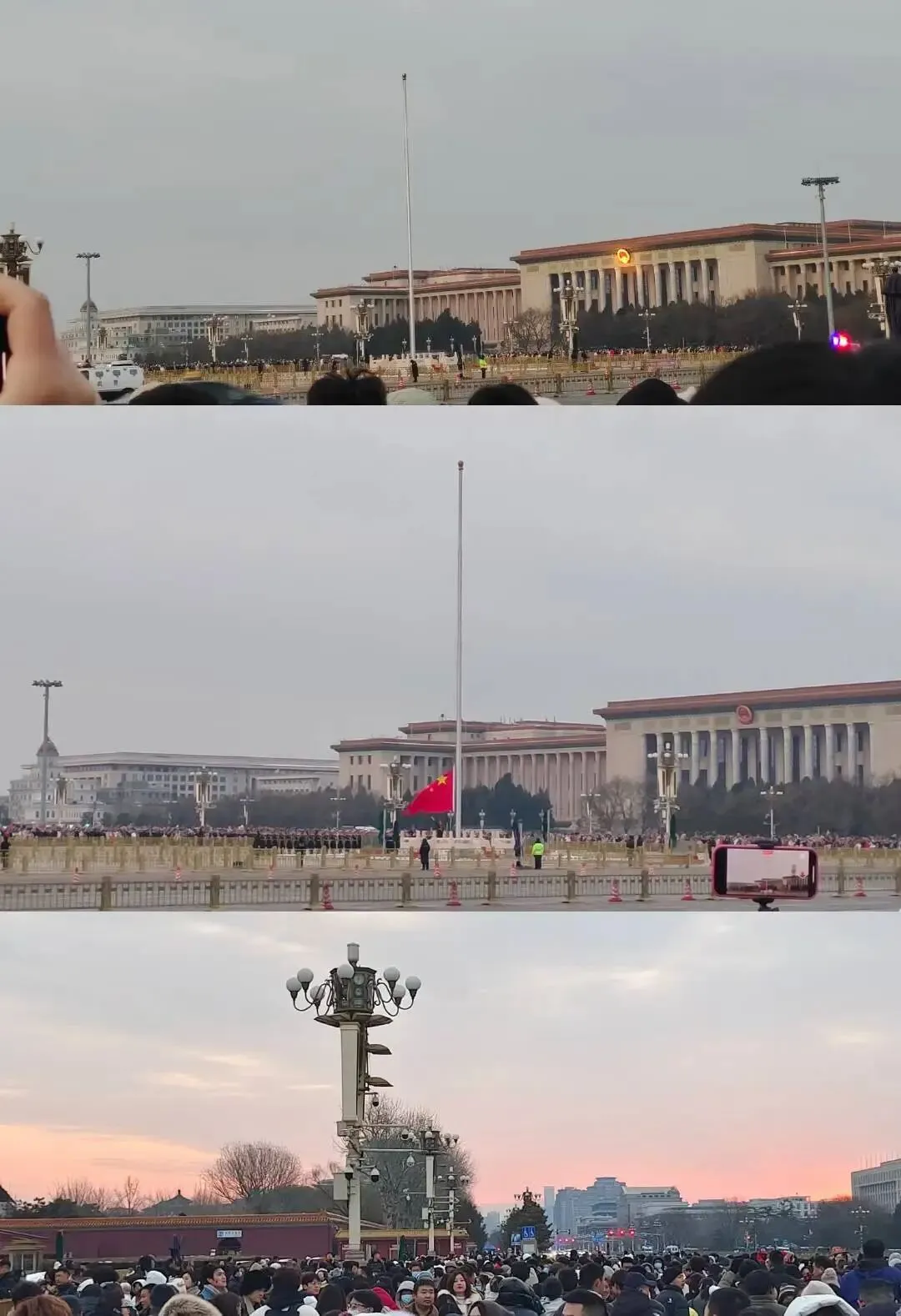 在天安门看升国旗纯纯是自己运气好,那天从郑州到北京西站的火车是早上5:20分左右到达北京西站的,本来准备趁着大早上人少,去故宫旁边的胡同里逛逛,但是下了地铁站就看到了很多人往外跑,我才猛然恍惚,原来还能赶上升国旗仪式,我也以最快的速度跑过去,还好,真的给赶上了,等待了一小会儿,在天安门这边