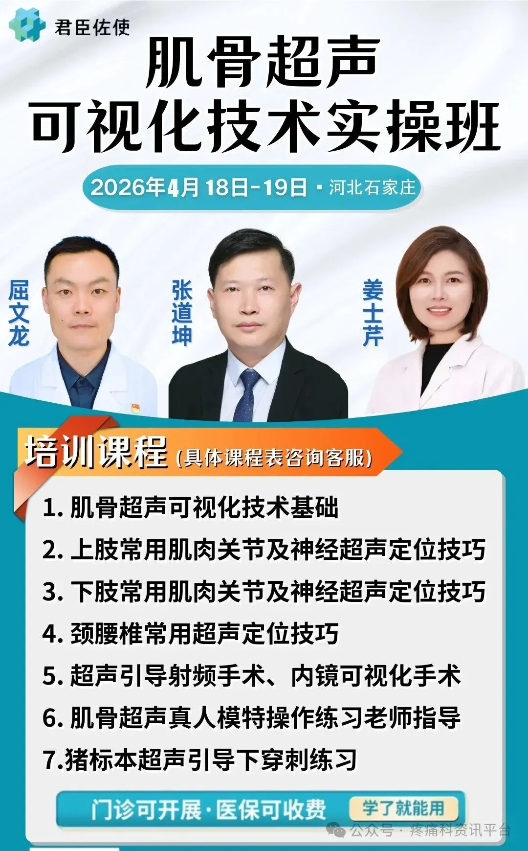 本次肌骨超声学习班在石家庄开班,实现参加一次学习班享受肌骨超声一条龙服务:理论授课+猪标本实操+真人模特实操。